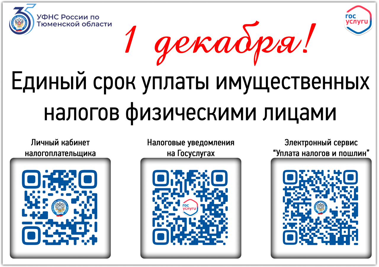 Налоговые органы Тюменской области напоминают о сроках уплаты налогов.
