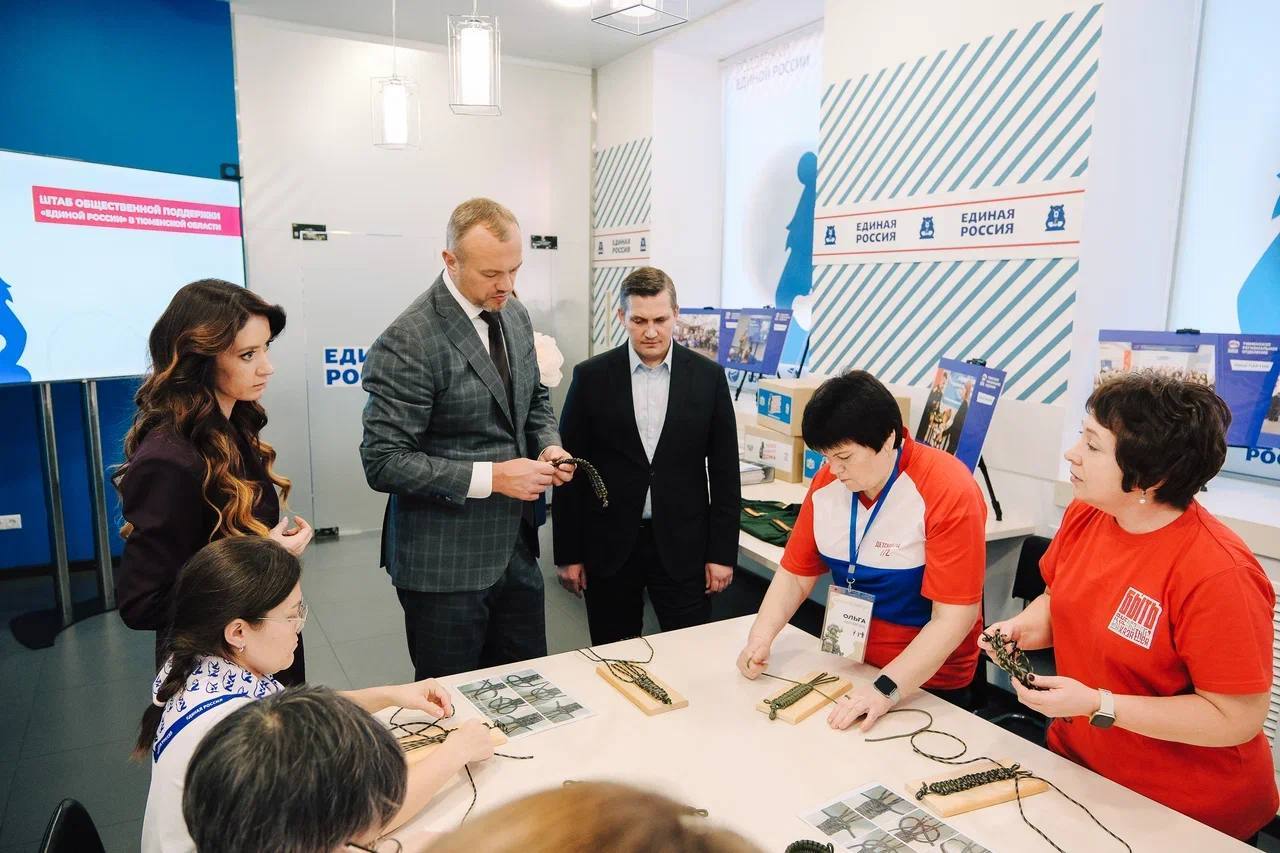Штаб общественной поддержки "Единой России" в Тюменской области был открыт первым в Уральском федеральном округе. Он объединил тех, кто хочет оказывать поддержку бойцам СВО и их близким, рассказала руководитель регионального исполкома "Единой России" Ольга Швецова: "В 2023 году начал работать Центр помощи участникам СВО, основной задачей которого является информирование о мерах поддержки и порядке их получения бойцами и членами их семей. Здесь постоянно проходит сбор гуманитарной помощи, а плетение маскировочных сетей ведется изо дня в день".