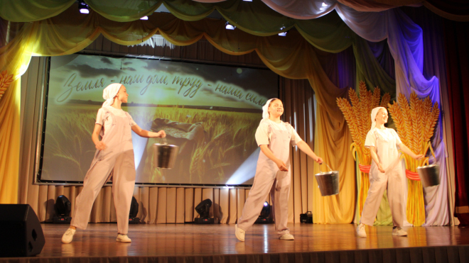 Программа "Земля – наш дом, труд – наша сила" была наполнена яркими вокальными и хореографическими номерами в качестве подарка от работников культуры и самодеятельных артистов.