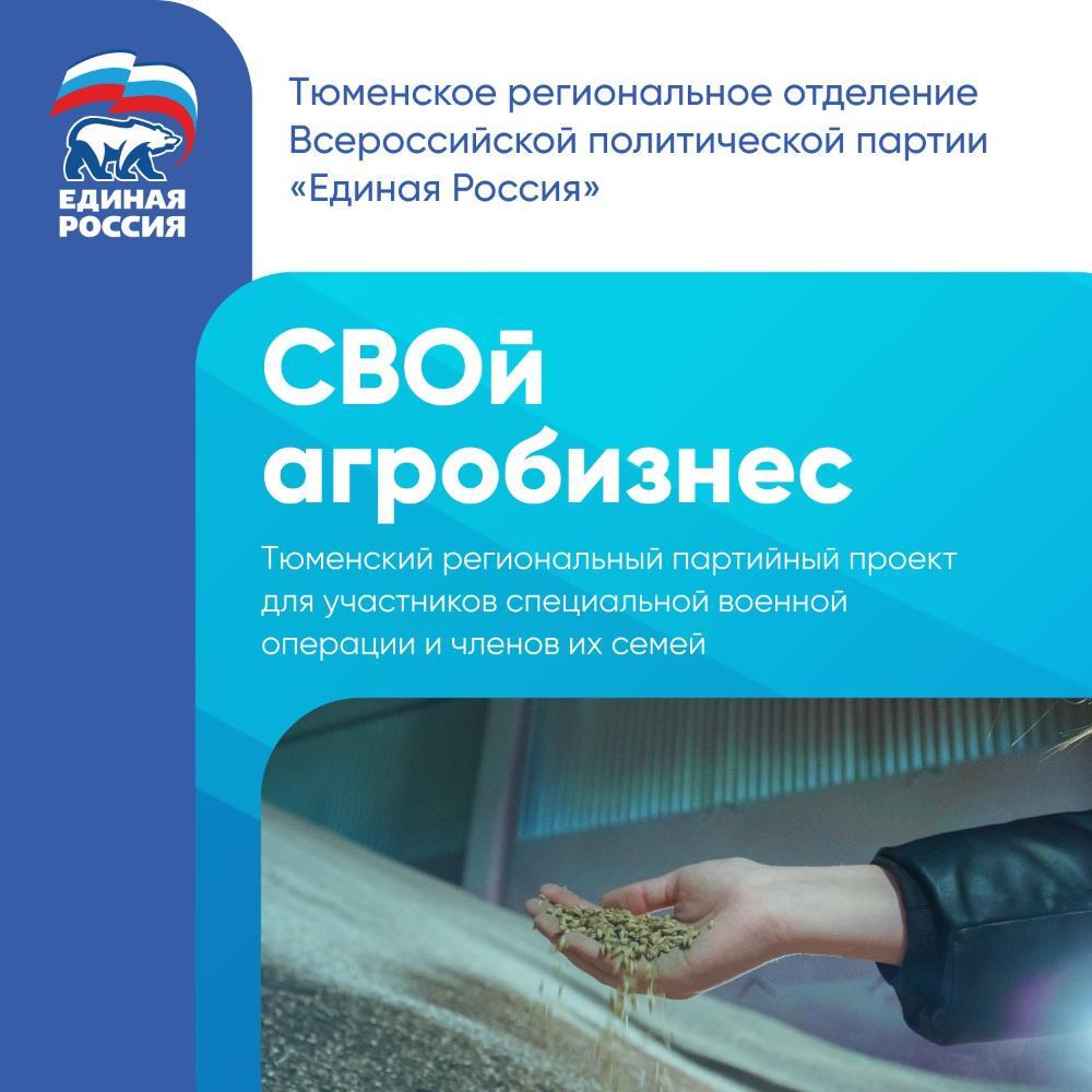 Тюменское региональное отделение партии «Единая Россия» совместно с Аграрным институтом ТюмГУ, Тюменской региональной общественной организацией участников СВО «Держава», Тюменским филиалом Государственного Фонда поддержки участников СВО «Защитники Отечества» объявляют о запуске проекта «СВОй Агробизнес».