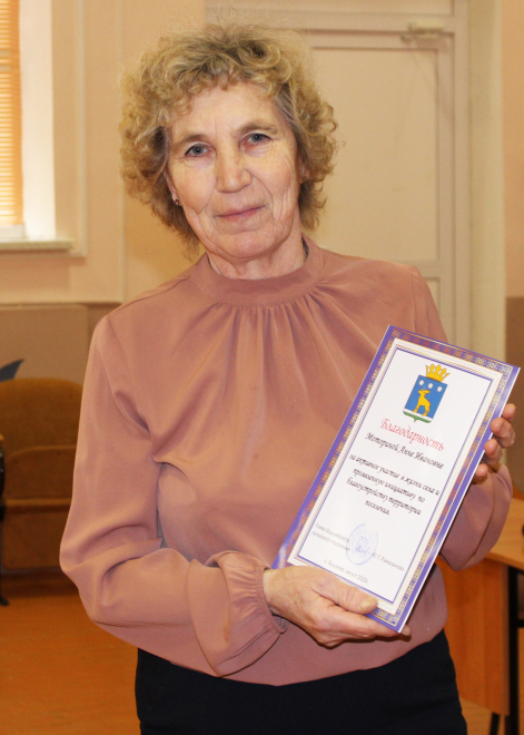 Юлия Геннадьевна вручила благодарственные письма Александру Бездорному, отметив его вклад в защиту Отечества, и Анне Моториной за активную жизненную позицию. "Анна Ивановна летом, гуляя с внуком, не пройдёт мимо сорных растений, которые появляются на клумбах", – поделилась с журналистами после схода руководитель территории.