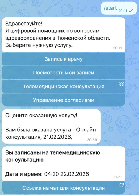 Чтобы записаться, нужно перейти по ссылке: https://max.ru/zdrav_to_bot или в поисковой строке мессенджера МАХ набрать: "Запись к врачу в Тюменской области".