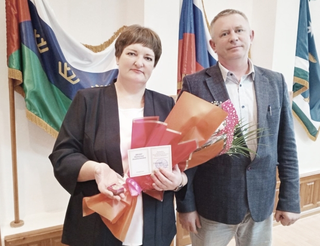 Учитель русского языка и литературы второго корпуса Юргинской школы Наталья Прахт удостоена знака отличия Министерства просвещения РФ «Отличник просвещения».